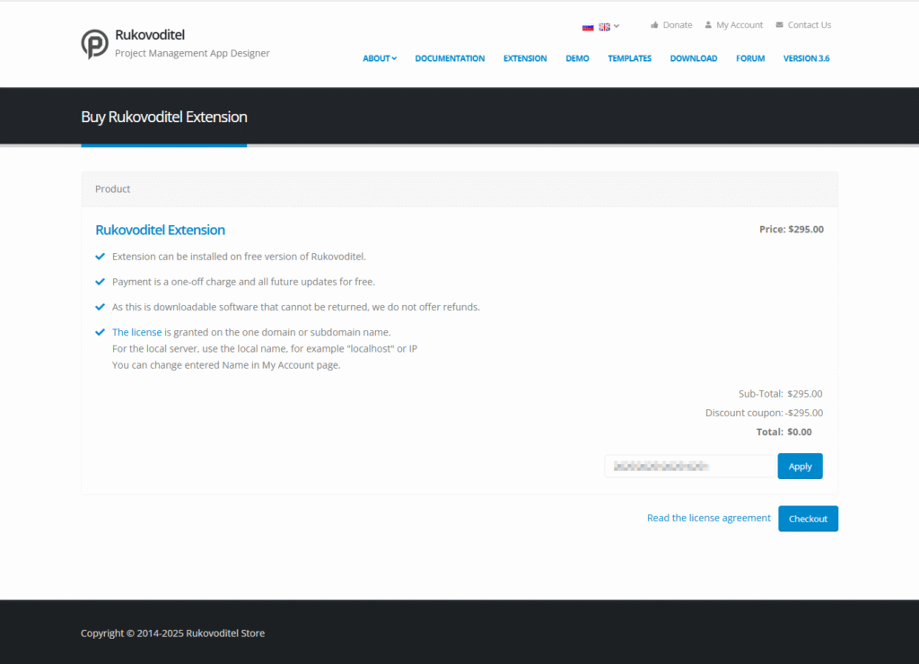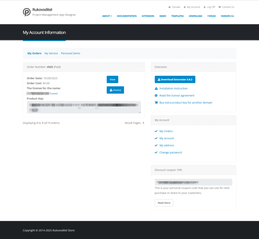 Rukovoditel の日本語化用言語ファイルを公式フォーラムにアップロードしたので、拡張機能の100%割引クーポンをもらいました。